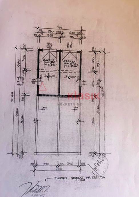 PRIZEMLJE - dvije garaže, svaka površine 21,84 m2, ukupna neto površina prizemlja - 43,68 m2