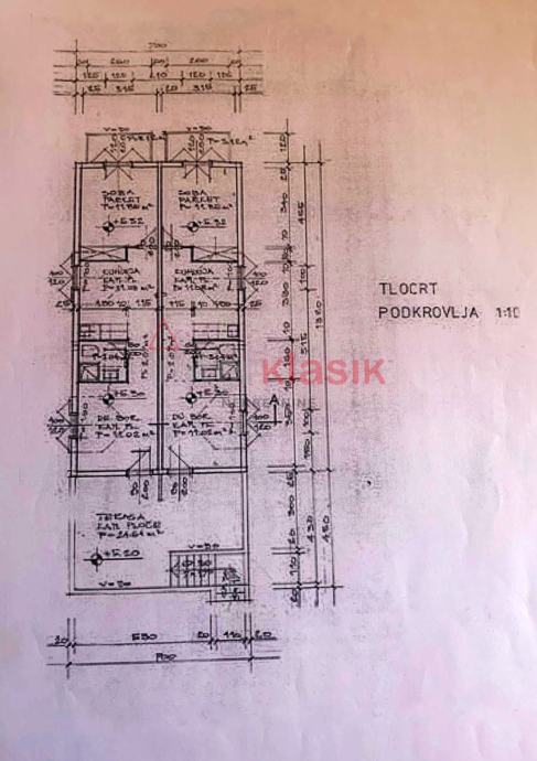 MANSARDA - jednosobni stan ili apartman (dnevni boravak, soba, kuhinja, kupaonica, 2 terase) površine 42,83 m2