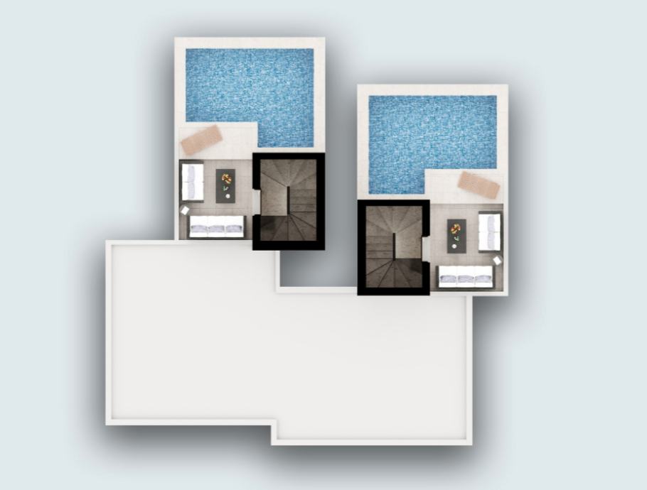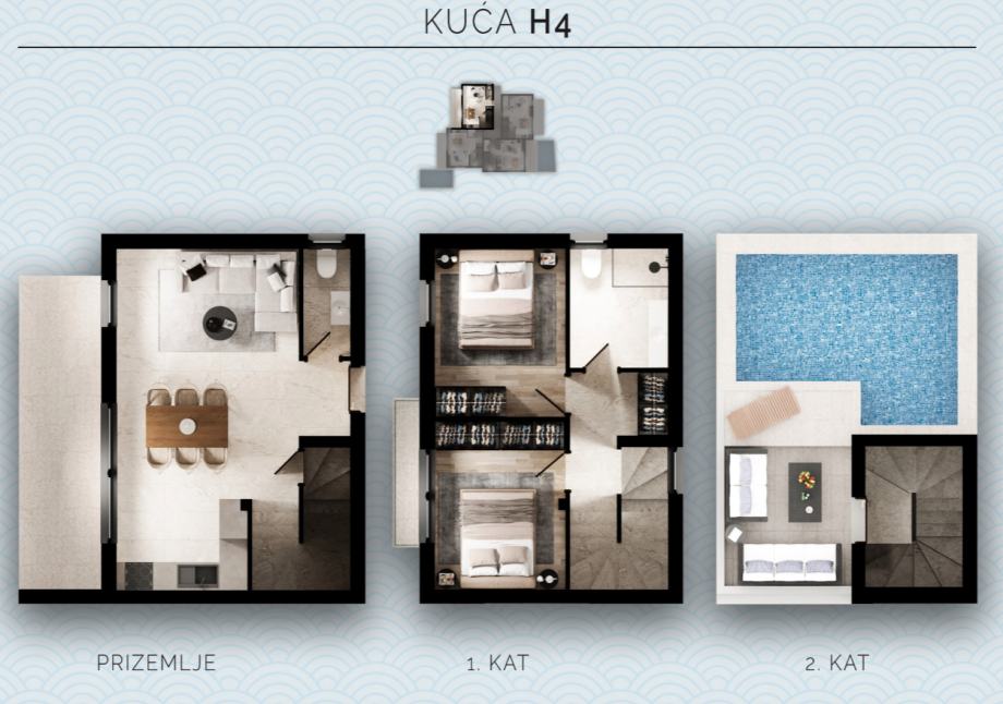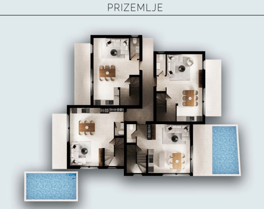 Dvije kuće imaju bazen na prizemlju, a dvije na krovu !