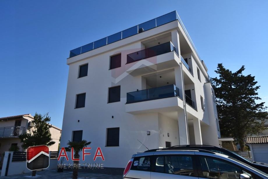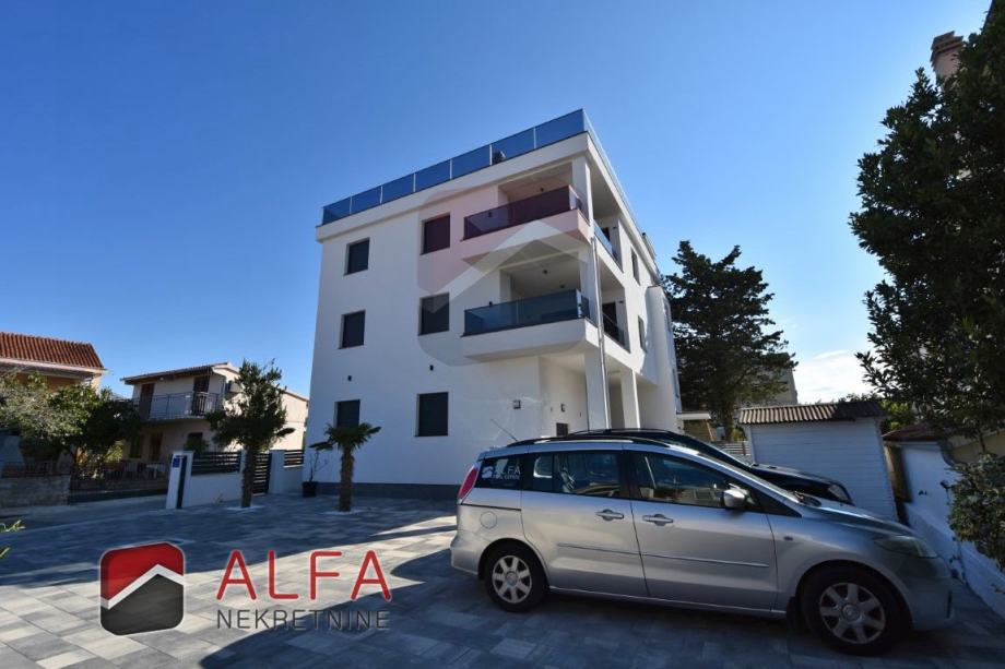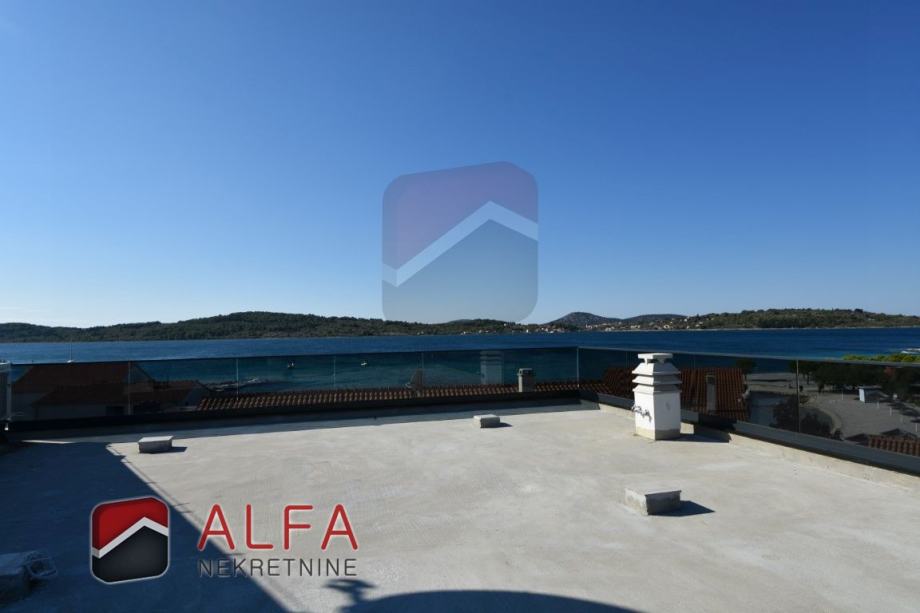 Vodice, Srima, prodaje se nova moderna luksuzna kuća s 5 apartmana u drugom redu do mora. Kuća ima ukupnu građevinsku bruto površinu 420 m2 i nalazi se na zemljištu od 489 m2. Smještena je na mirnoj lokaciji, samo 50 m od mora.
