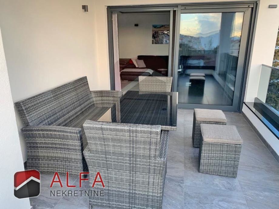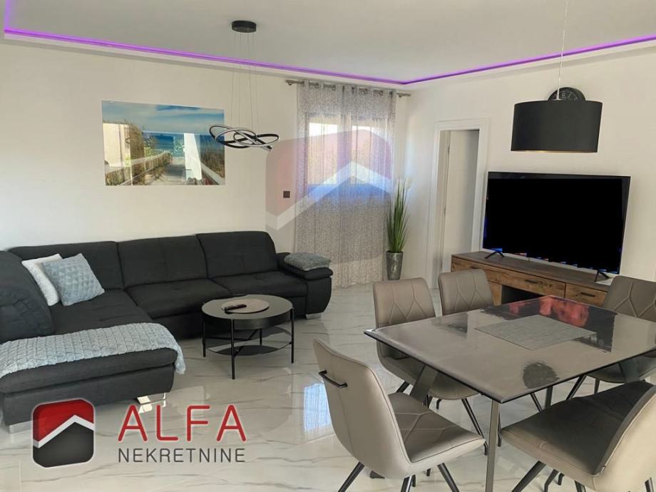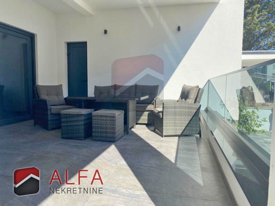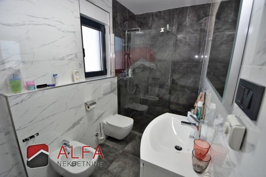 U prizemlju se nalazi velik i prostran apartman sa dvije spavaće sobe, kupaonicom, kuhinjom sa blagovaonicom i dnevnim boravkom sa izlazom na prostranu terasu od 20 m2.