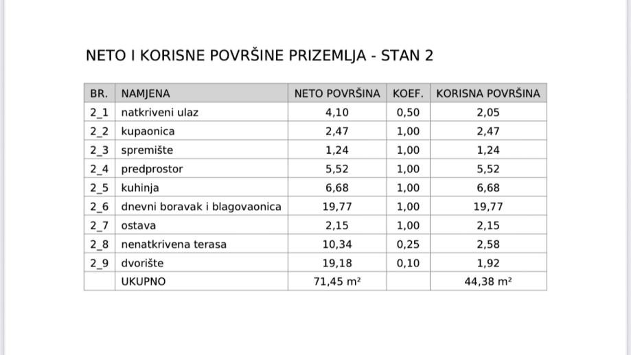 DODATNO: VANJSKI PARKING, DVORIŠTE, TERASA, GARDEROBA, SPREMIŠTE