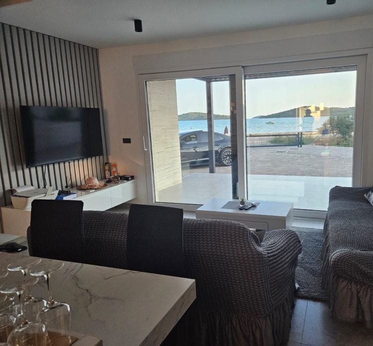 Kuća u Srimi kod Vodica PRVI RED do MORA je potpuno opremljena te spremna za prodaju. U tlocrtu je označena kao stan S1, korisne površine 98,46 m2