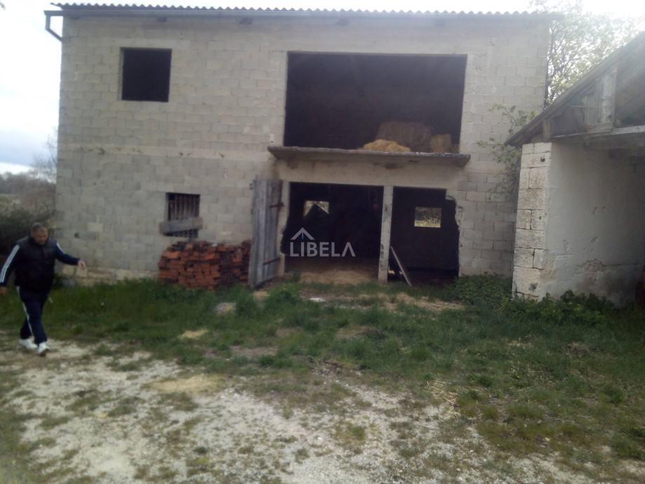 U malom mirnom mjestu nedaleko Žminja, prodaje se katnica, kuća korištena kao štala, izgrađena od bloketa sa građevinskim zemljištem uz cestu.