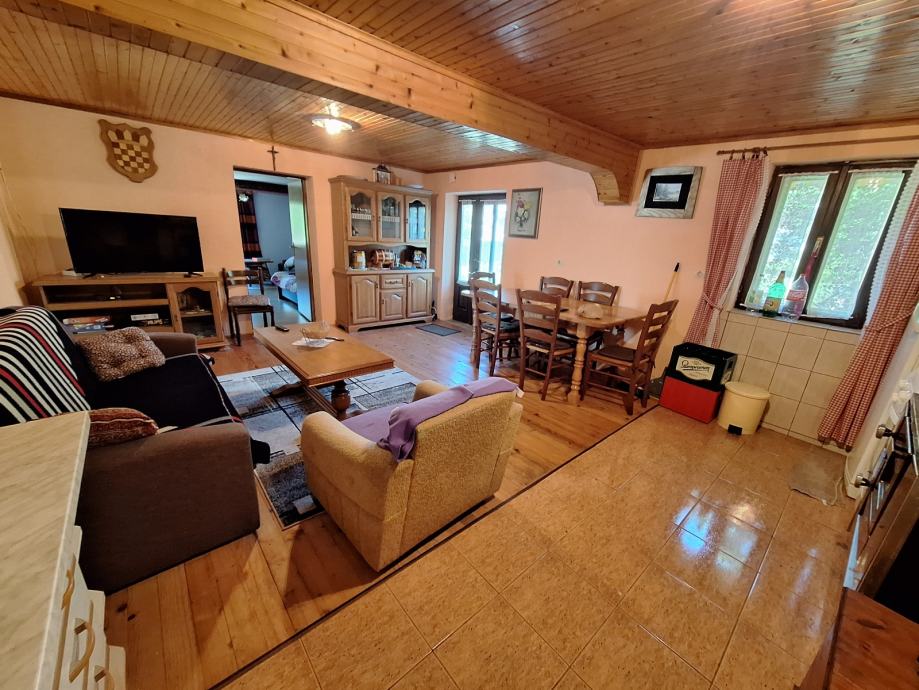 Prodaje se nedavno obnovljena tradicionalna lička kuća tlocrtne površine 101m2. Sastoji se od dnevnog boravka sa blagovaonicom i kuhinjom, kupatilom, garderobnog prostora i dvije velike spavaće sobe. Ispod kuće se nalaze dva odvojena podruma. Na terenu se nalazi i gospodarska zgrada (u prizemlju štala + garaža + drvarnica, a na katu sjenik) tlocrtne površine cca 40m2. Na zemljištu ukupne površine cca 4500m2 su nasadi voćaka (šljive, jabuke, kruške, bazga). Kuća posjeduje veliku vodospremu (gusterna/šterna) za opskrbu vlastitom vodom, spojena je na električnu mrežu i do nje vodi asfaltirana cesta.