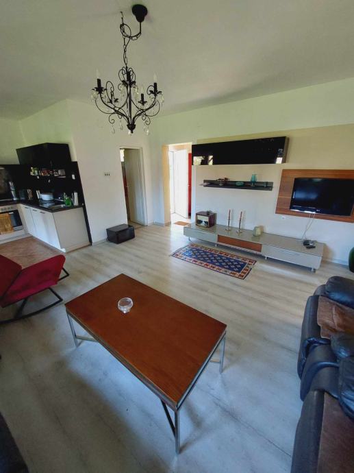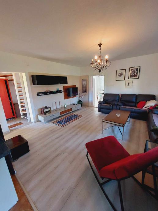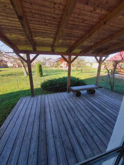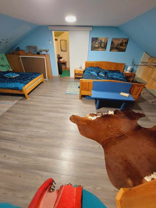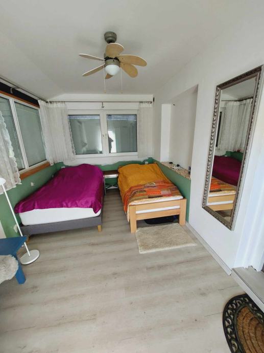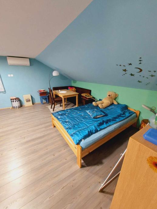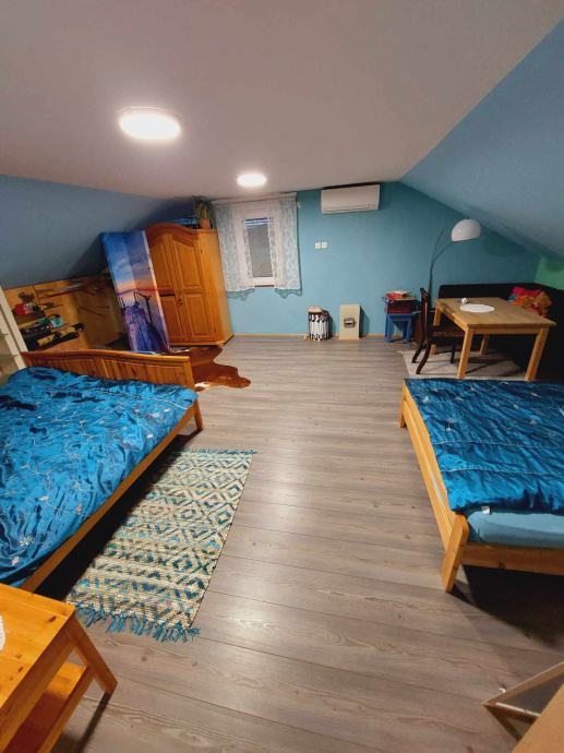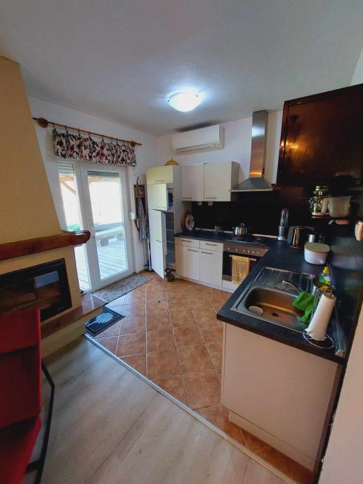 U prizemlju nekretnine je veliki dnevni boravak sa kuhinjom i blagovaonicom i izlazom na natkrivenu terasu, te spavaća soba i kupaonica. U potkrovnom dijelu se nalaze velike spavaće sobe. Uz nekretninu prileži još jedna prostorija sa posebnim ulazom koja se može prenamijeniti u stambeni prostor, vešeraj, spremište ili može poslužiti nekoj drugoj namjeni.