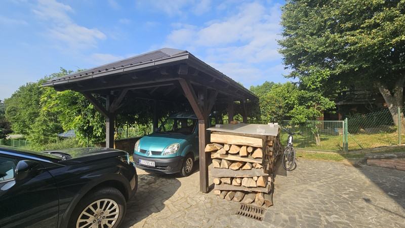 U dvorištu se nalazi nadstrešnica za auto.