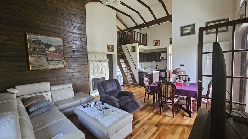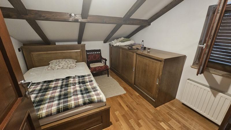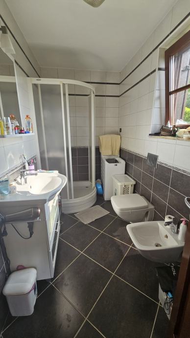 Kuća se sastoji od 5 soba,2 kuhinje ,2 kupaonice+2 wc-a ,garaže, balkona i terase .