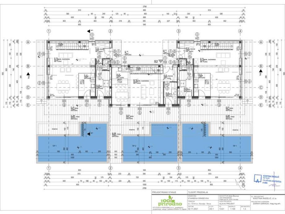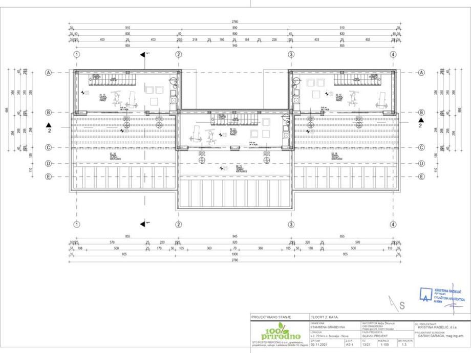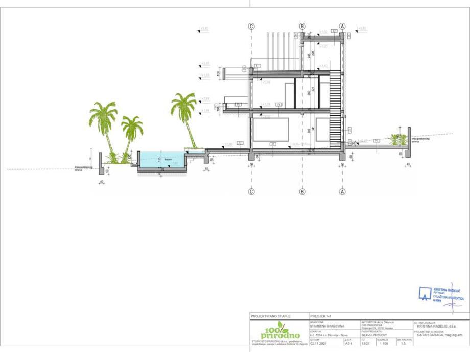 Objekt je građen kao 3 kuće-vile u nizu, od toga se prodaje samo prva sa lijeve strane