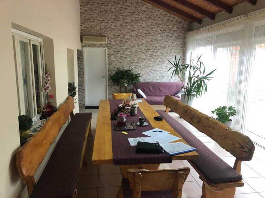 Uz kucu je 260m2 zatvorenog prostora( garaže, spremišta, štagelj i sl), 260m2 natkrivenog prostora.