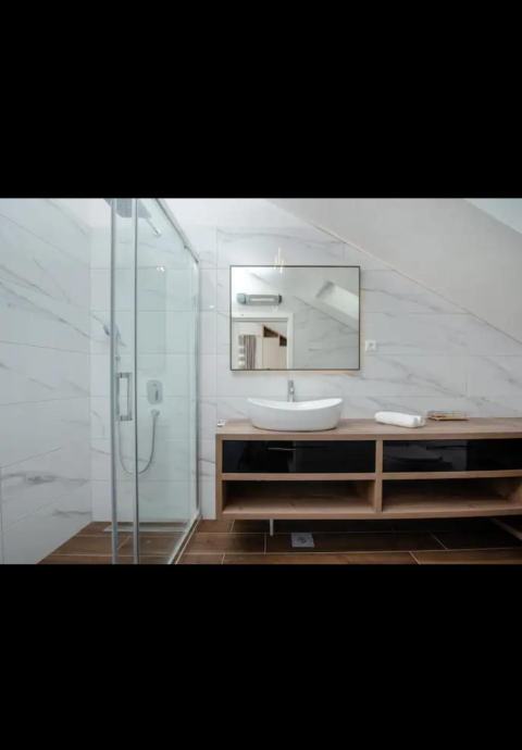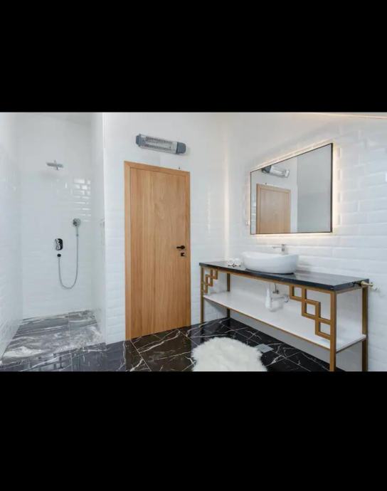 Vila se nalazi u nasadu maslina u malom mjestu na otoku Braču sa istočne strane, okružena samo prirodom i lijepom šumom, smještena na 100m od mora. Moderno opremljene, izgrađene u 2021. godini, sadrže 3 spavaće sobe (16 m2) (svaka ima TV i klimu) s tri luksuzna toaleta (6 m2) s walk-in tuševima i jednom dodatnom kadom (9m2) Vani se nalazi bazen s ležaljkama i suncobranima, veliki kamin za roštiljanje i opuštanje u prekrasnom pogledu.