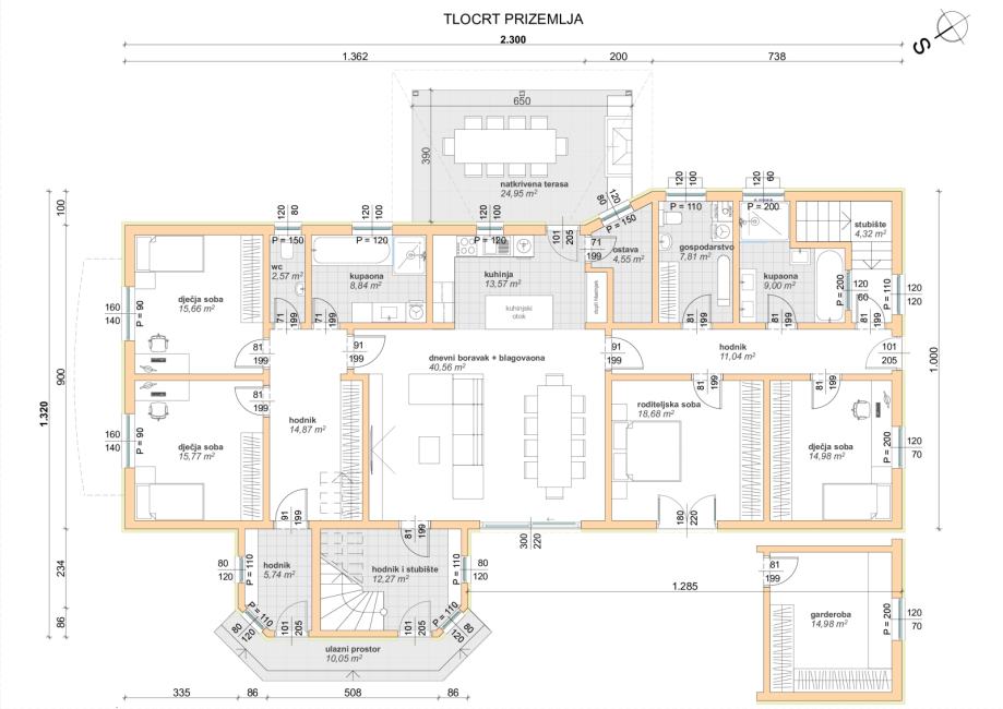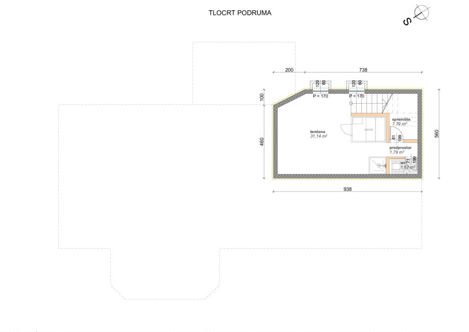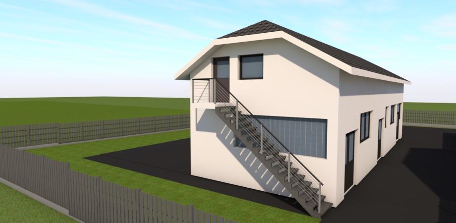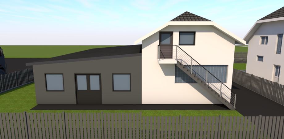 Objekt bruto površine 122m2 i uz nastavak na objekt duplo armirana terasa 140m2 sa mogućnošću proširenja zgrade na 262m2 bruto površine.