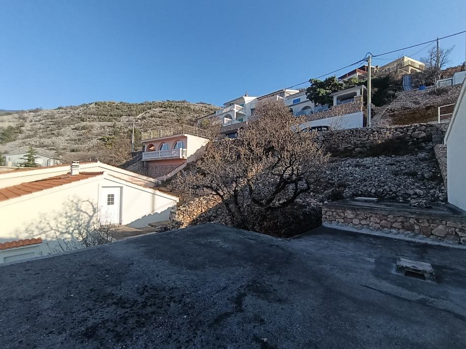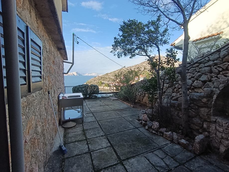 Terasa se proteže oko kuće (10 m2) gdje se nalazi i kameni roštilj te stepenice za gornju etažu koja se sastoji od dvije spavaće sobe, spremište dodatna kuhinja(nije dovršeno), balkona i toaleta (nije dovršen).