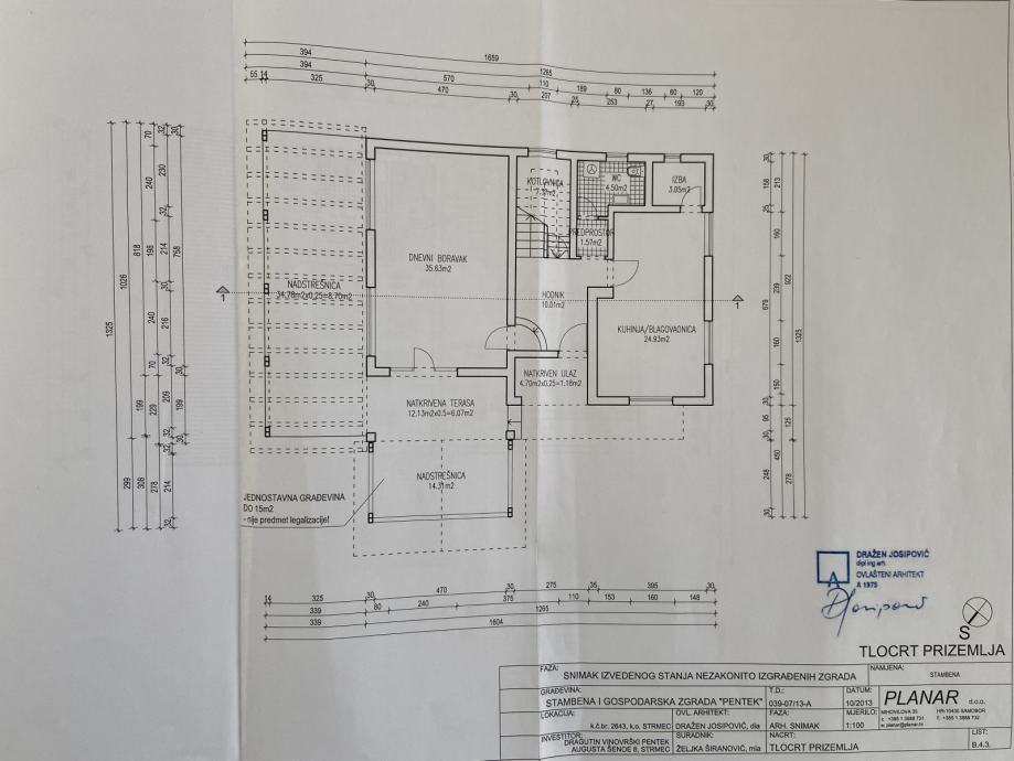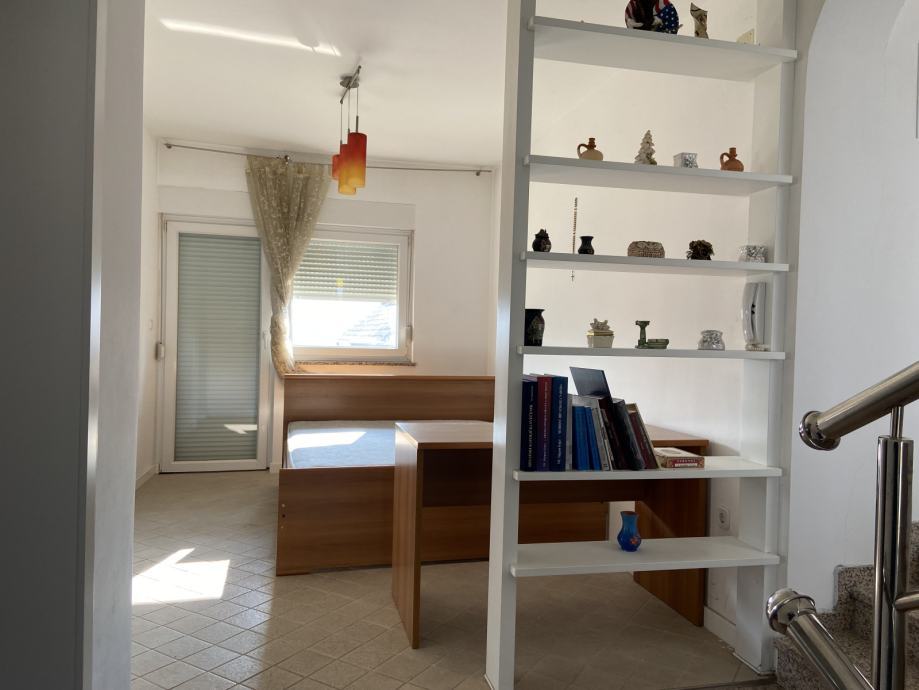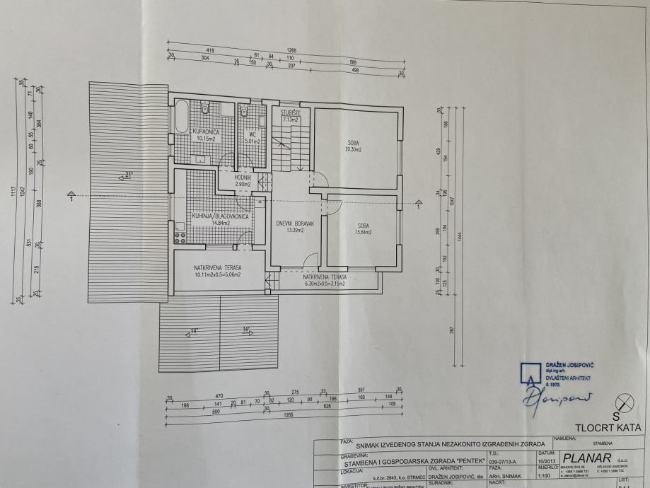Potkrovlje: Dnevni boravak, kuhinja sa blagovaonom, dvije sobe, kupaona te natkrivena terasa.