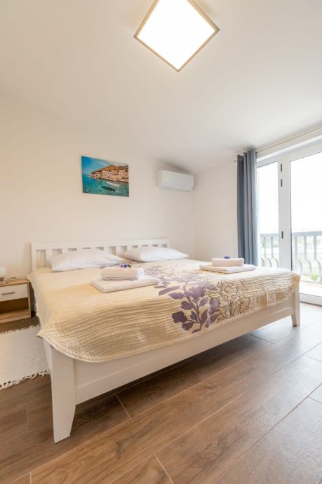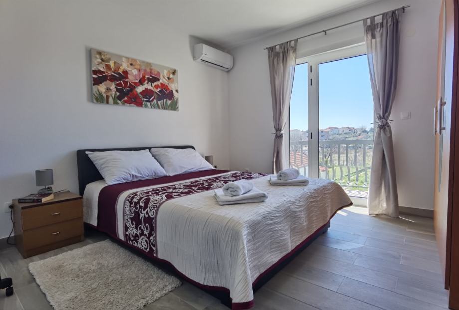 Na sjevernom dijelu prvog kata nalazi se dvosoban stan: predprostor, kuhinja sa blagavaonicom i dnevnim boravkom, dvije spavaće sobe, hodnik i kupaonica.