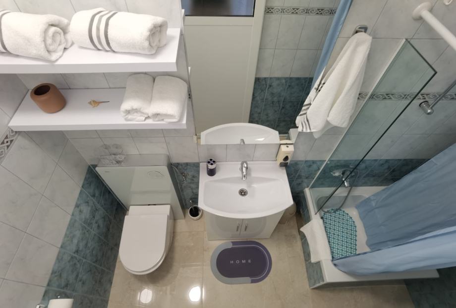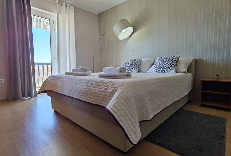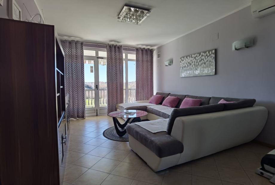 Drugi stan, na prizemlju je dvosoban: predsoblje,kuhinja sa blagavaonicom i dnevnim boravkom, dvije spavaće sobe, hodnika i kupaonice, djelomično natkrivena terasa i ostava.