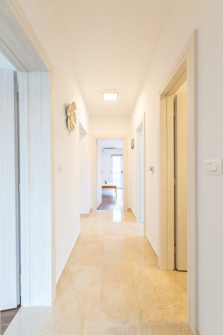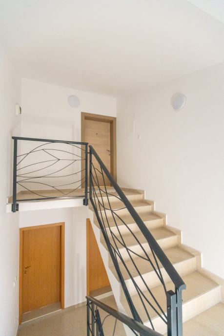.Na drugom katu se nalazi trosoban stan: predprostor, kuhinja sa blagavaonicom i dnevnim boravkom, ostava, hodnik, tri sobe i dvije kupaonice, natkriveni balkon i terasa.