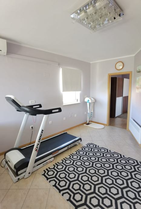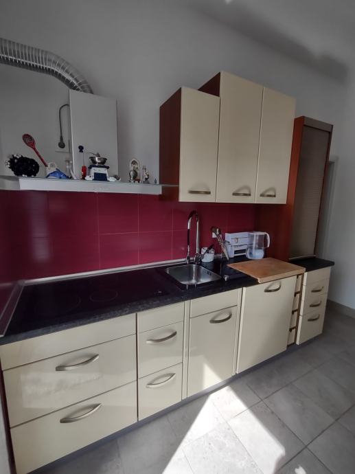 Na prvom katu jednosoban stan: hodnik, kuhinja sa blagavaonicom i dnevnim boravkom, jedna soba , kupaonica i natkriveni balkon.