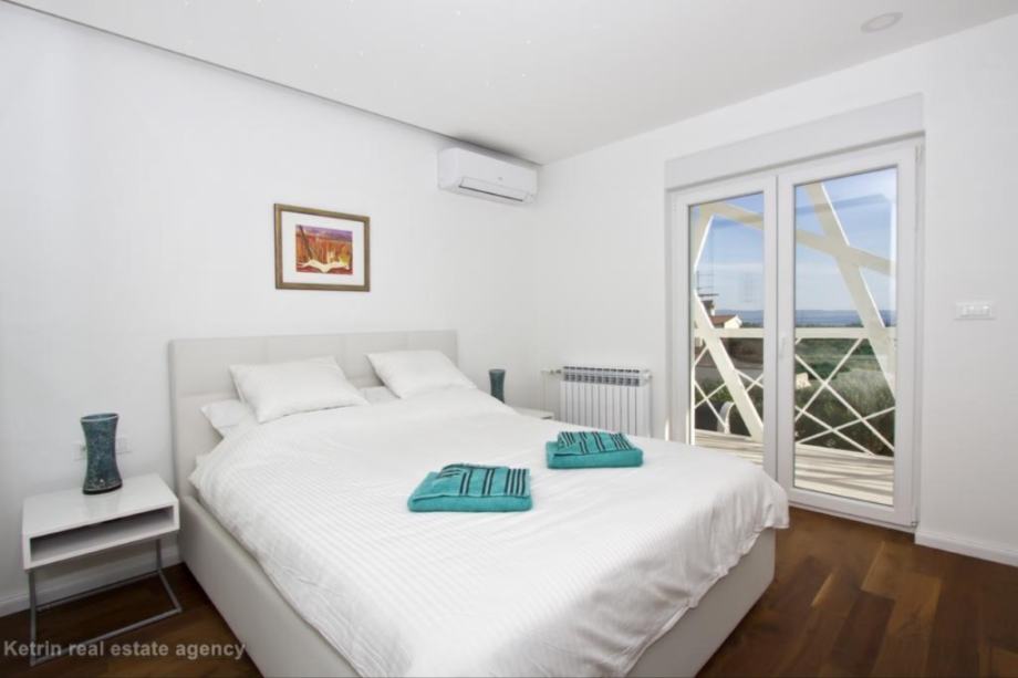 Potpuno opremljene dvije spavace sobe svaka sa svojom kupaonicom su smjestene na katu dok se treca nalazi na medukatu kao gostinjska soba takoder s kupaonicom.