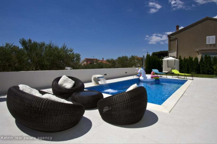 A cultivated garden with Mediterranean plants and a fully equipped summer kitchen with a fireplace where you can enjoy relaxing evenings by the pool are just some of the amenities this villa has to offer!
