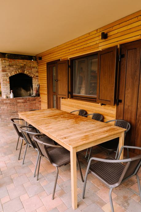 Ova prekrasna kuća nudi nevjerojatan spoj udobnosti i elegancije. Smještena je u mirnom, prekrasnom zelenom okruženju, što je savršeno za opuštajući odmor. Uživanje u velikom vrtu, s mnogo zelenila, hlada, s bazenom, jacuzzi-em, malonogometnim igralištem, kao i roštiljem u sklopu kojeg se nalazi vanjska terasa i kuhinja, savršenom za odmor, opuštanje ili trajno stanovanje.