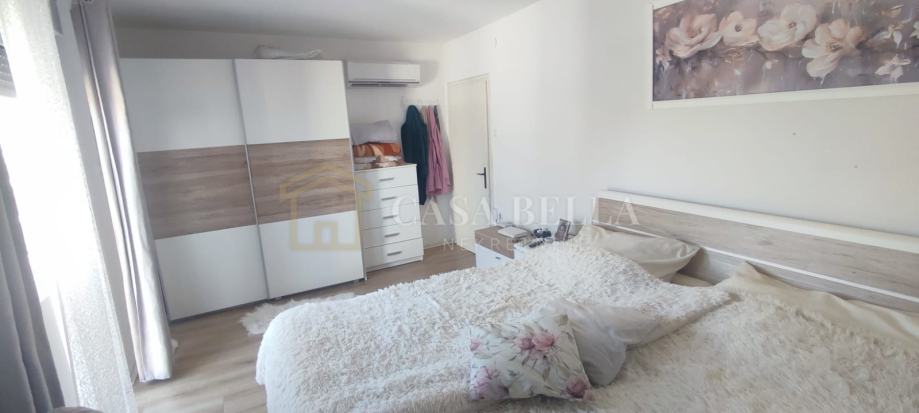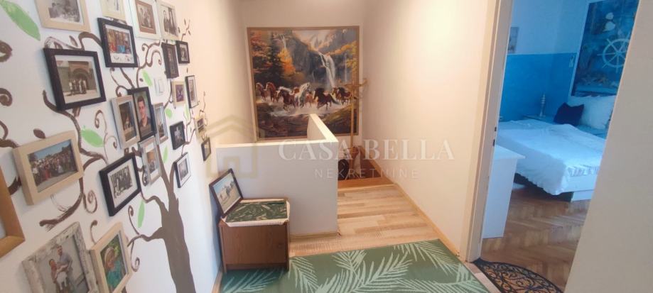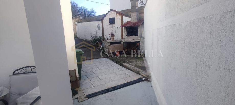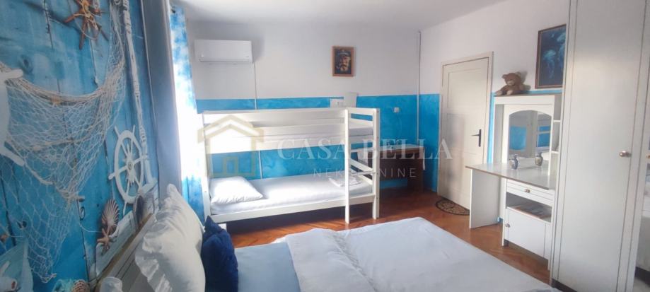 Na katu su dvije spavaće sobe sa pogledom na more, jedna soba ima balkon i gore je tavan. Na dvorištu je terasa sa rostiljem te iza kuće garaža i jedno parkirno mjesto. Vrt ima 175 m2...stablo smokve,trešnje,mandarina,limun i povrće u voćnjaku.