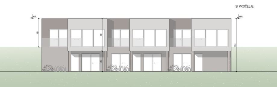 Svaka kuća ima vlastiti vrt / zelenilo iza kuće (25m² terasa) te dodatnih 100 m² zemljišta pored kuće za odmor, igru ili vrtlarenje.