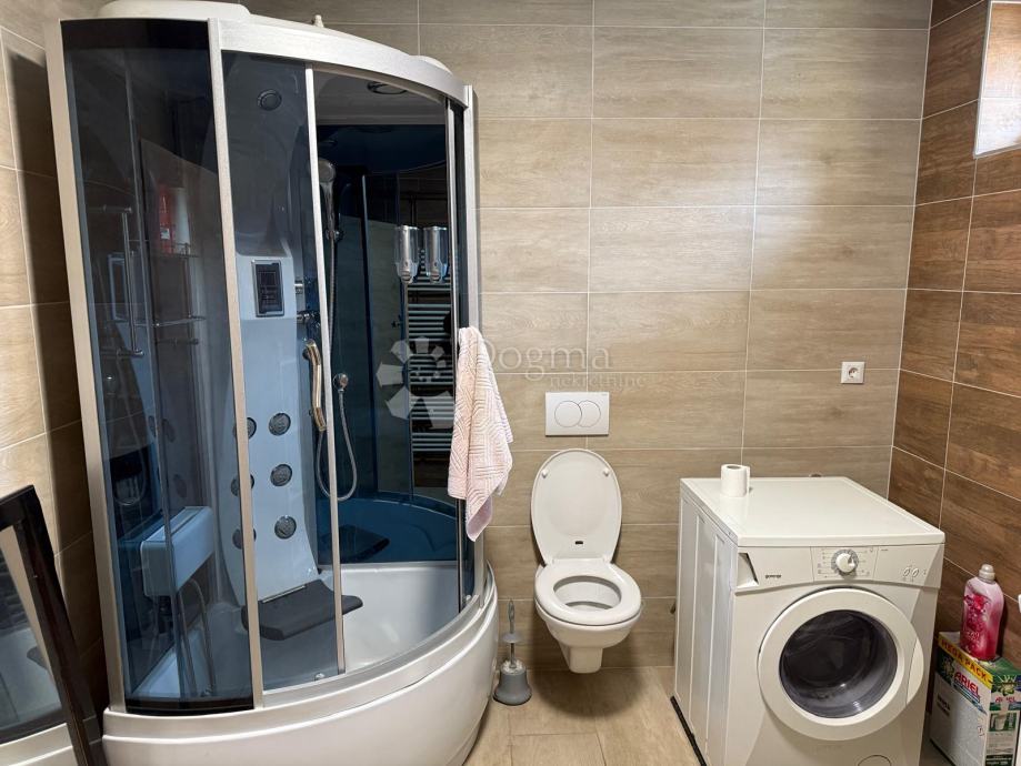 U novom dijelu kuće nalazi se prostran i svijetao dnevni boravak koji je povezan s kuhinjom i blagovaonicom u otvorenom tipu prostora. Ovaj otvoreni prostor stvara ugodnu i funkcionalnu atmosferu, idealnu za obiteljska okupljanja i društvena događanja. Također, u ovom dijelu kuće smještena je velika kupaonica s modernim sadržajem te dvije sobe koje pružaju udoban prostor za spavanje i odmor.