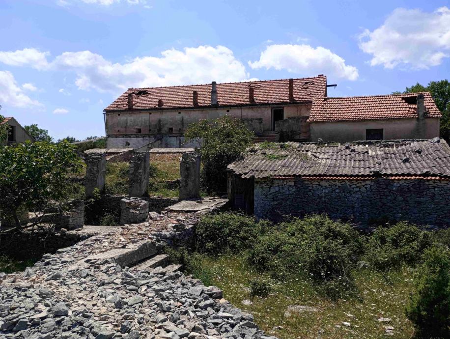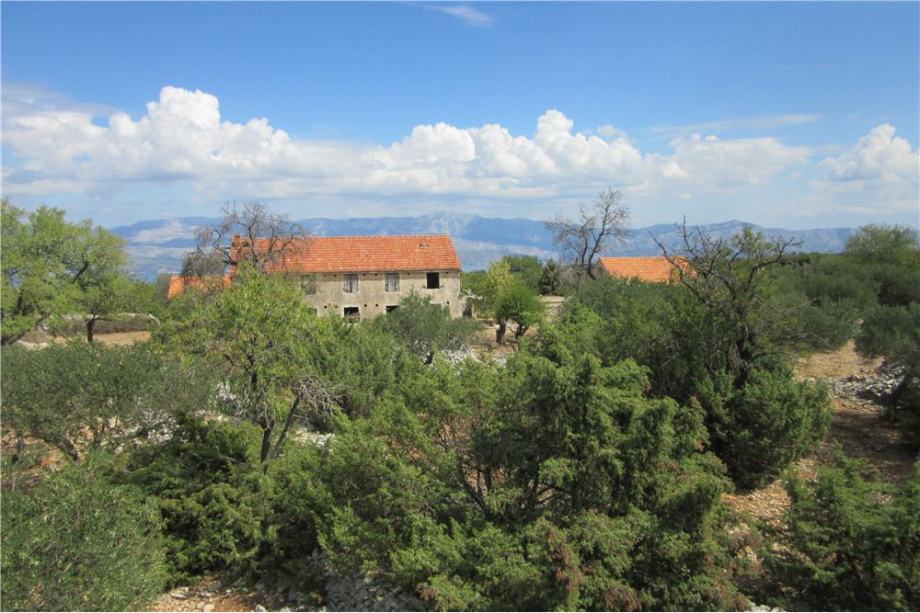 On the island of Brač, 3,000 m above the town of Supetar, a beautiful estate of 123,888 m2 of land with 4 existing planned and drawn buildings built at the end of the 19th century is for sale: