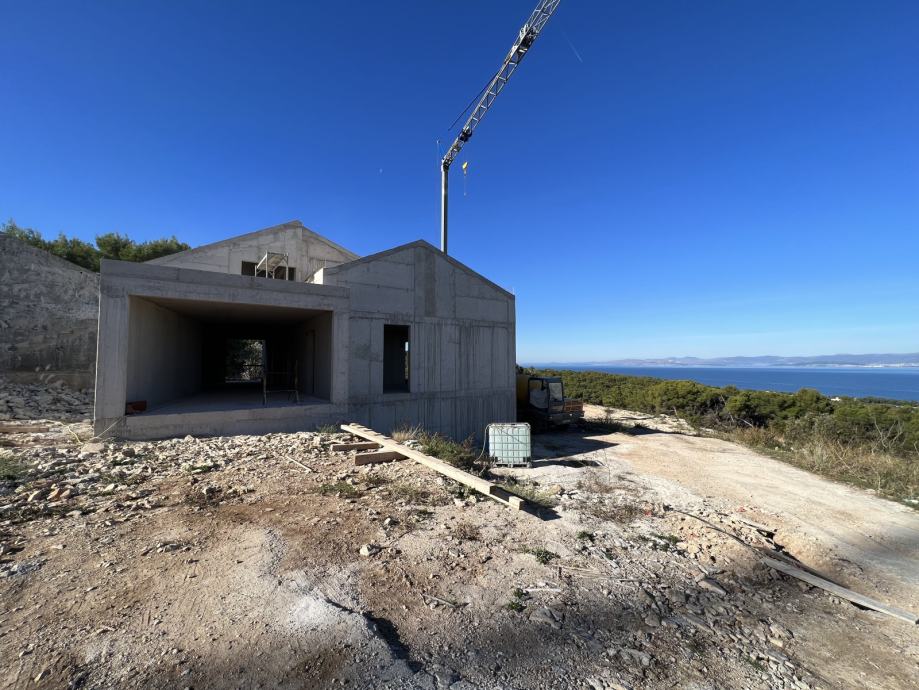 Prodaje se vila u roh-bau stanju na iznimnoj, uzvišenoj lokaciji iznad Supetra, s trajno otvorenim pogledom na more i obalu Splita. Riječ je o rijetkoj poziciji koja spaja mir i privatnost, a istovremeno nudi odličnu prometnu povezanost s kopnom.
