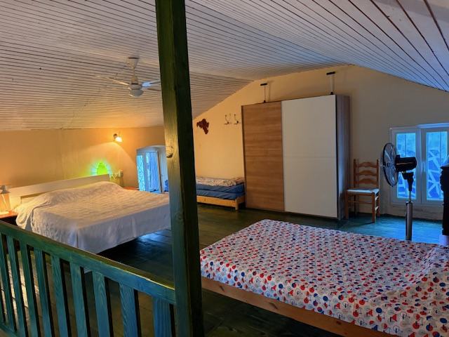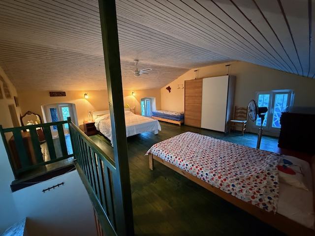 Kat: velika spavaća soba (galerijski tip, bez vrata) – bračni krevet + 2 manja kreveta, ormar