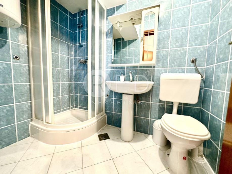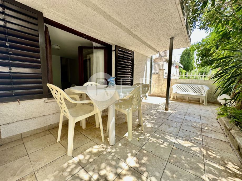 U prizemlju se nalazi apartman (1 spavaća soba, kuhinja, terasa), 2 velika podruma i garaža.