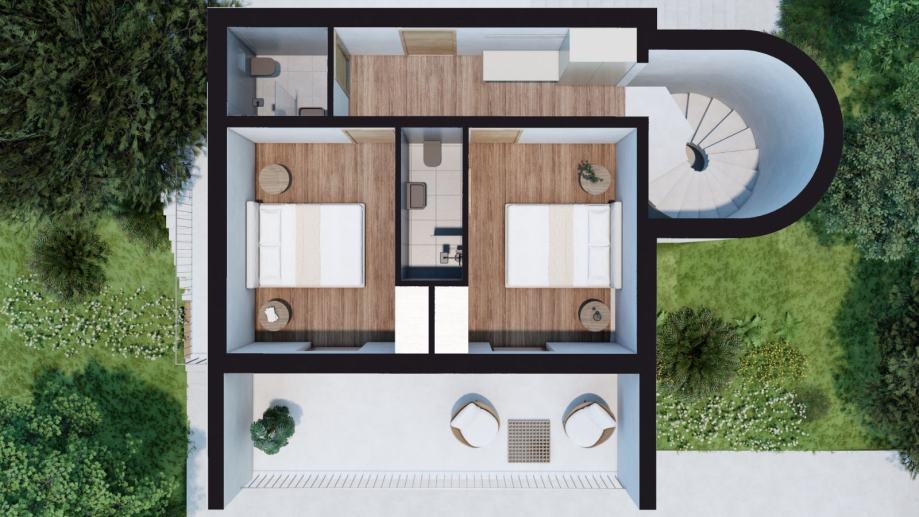 ukopana garaža za 3 vozila na stražnjoj strani kuće