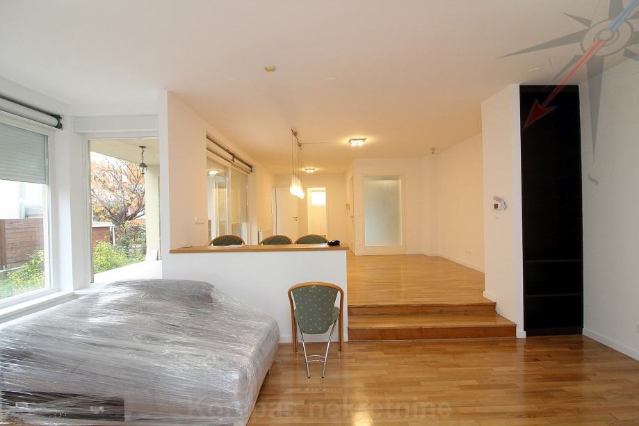 HIGH GROUND FLOOR: kitchen, toilet, large living room with access to the terrace and further to the garden (331 m2) with barbecue.