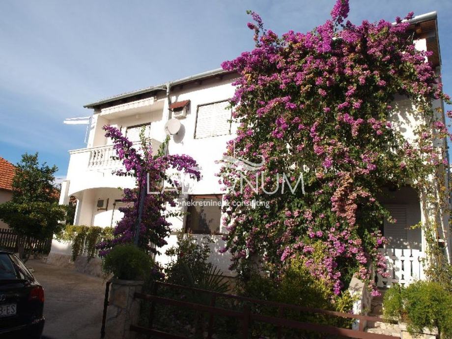 Prodaje se apartmanska kuća katnica u centru Sv. Filip i Jakova. Udaljena je 300m od mora i centra grada što je čini atraktivnom za odmor ljeti. U prizemlju se nalazi jedan dvosoban i jednosoban apartman, a isti raspored je i na katu. Kuća ima velike terase na obe etaže te okućnicu sa četiri parkirna mjesta.