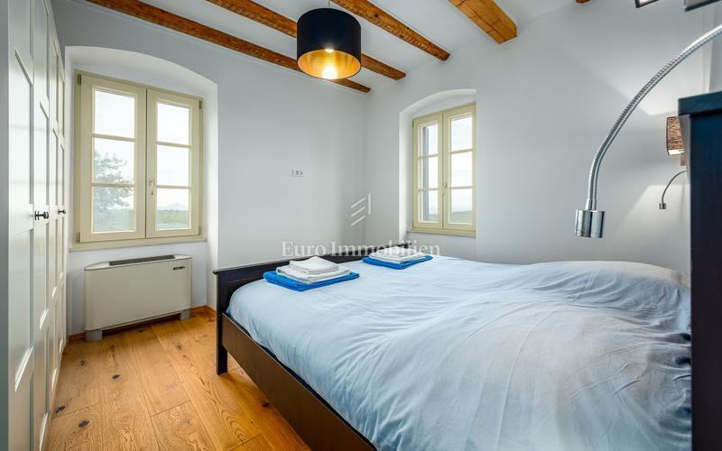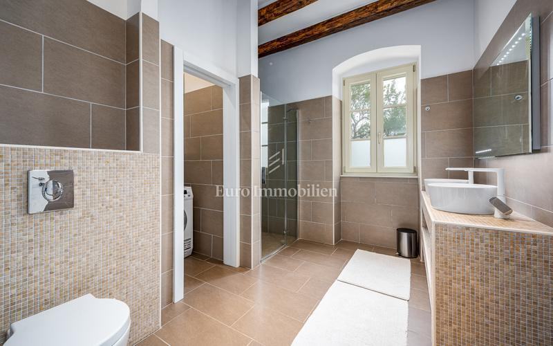 Kompletno renovirana dvojna kamena kuća s bazenom smještena je u malom istarskom mjestu Sv. Lovreč Labinski u istočnoj Istri, oko 14 km udaljenom od Labina. Udaljenost od najbliže plaže odnosno prekrasne uvale Tunarica iznosi svega 1 km. Sveti Lovreč Labinski je mirno mjesto, okruženo zelenilom i netaknutom prirodom i kao takvo idealno za ugodan obiteljski život ili savršen odmor.