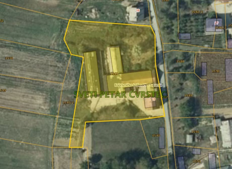 Kuća ukupne neto površine 137,70m2 nalazi se u mirnoj ulici, u naselju Sv. Petar Čvrstec, kraj Križevaca, na adresi Ervišci 13, oko 15 km jugoistočno od Križevaca. Imanje je pogodno za obiteljski život u idiličnom okruženju ali i djelatnost OPG-a.