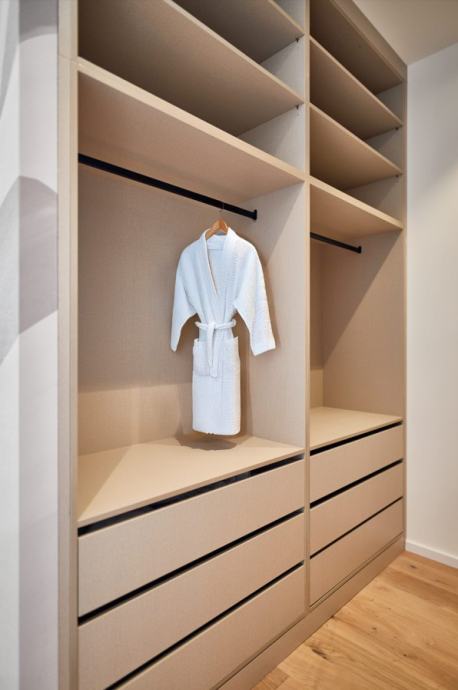 Kuhinje i spavaće sobe kompletno su opremljene namještajem po mjeri proizvođača Ancona grupa. Dnevni boravci opremljeni su komadnim namještajem proizvođača Nunc, televizorom, soundbarom i playstation-om. U kupaonicama je ugrađeno podno grijanje te oprema njemačkih dobavljača sanitarija (Hansgrohe, Tece), a zidovi i podovi kupaonica opločeni su pločicama talijanskih dobavljača (Casalgrande, Ceramiche Cesara). Podovi ostalih unutrašnjih prostorija vila izvedeni su u drvenoj podnoj oblozi, Alpine troslojni parket (hrast, 21 mm debljine) lakiran, pero+utor sistemom spajanja.