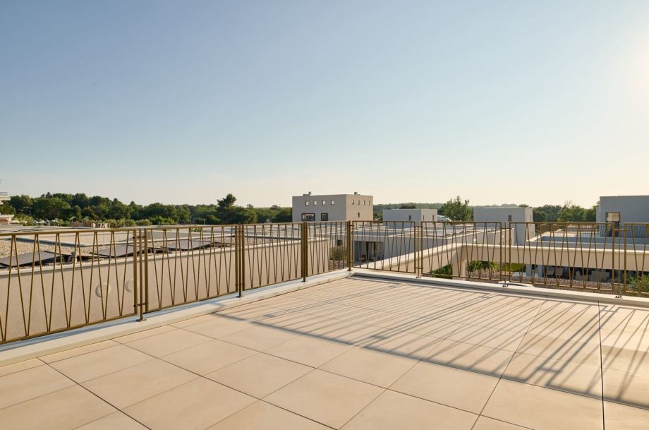 Vile su izvedene u modernoj arhitekturi od armiranog betona sa podnom pločom i temeljnim trakama te s velikim staklenim stijenama, prostranim otvorenim prostorima i vrhunskim namještajem. Vanjska ALU stolarija opremljena je prvoklasnim Wicona profilom, a ostakljenje ima najveći dopušteni koeficijent prolaska topline od 0,7 W/m2K. Međuprostor takvih stakala je ispunjen inertnim plinom (argon). Krov je izveden kao ravni i izoliran prvoklasnom hidroizolacijom (TPO membrana), parnom branom i toplinskom izolacijom debljine 12 cm. Na krovu svake vile postavljena je solarna elektrana Huawei.