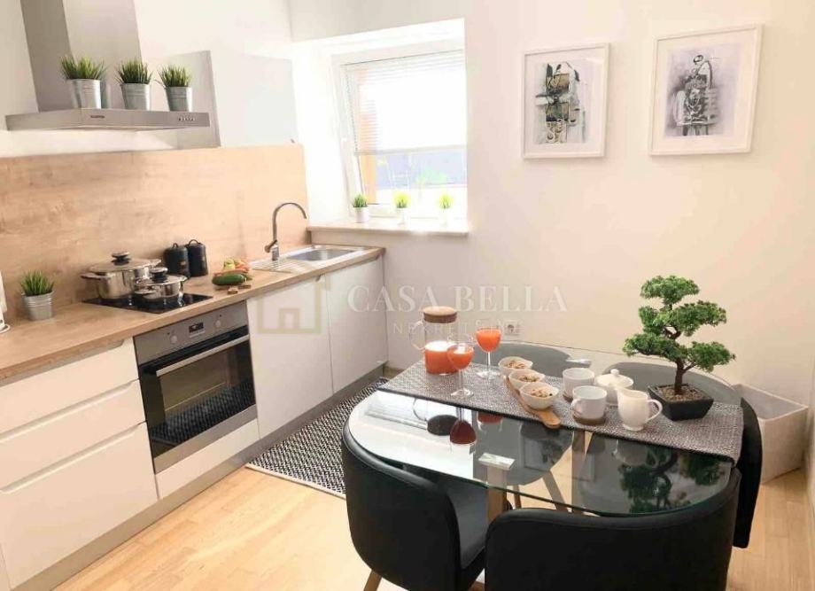 CASA BELLA iz ponude izdvaja u blizini starog centra Pule, 400 metara od Arene izrazito atraktivnu kuću u nizu ukupne površine 163 m2 sa prostranom terasom i dvorištem, te nudi mogućnost podizanja još jedne dodatne etaže od otprilike 100 m2 stambene površine. Kuća se sastoji od ulaznog pred prostora, veoma prostranog dnevnog boravka sa blagovaonom, dvije visokokvalitetno uređene kuhinje, dvije osvijetljene spavaće sobe, dva kupatila i izrazito velikom terasom koja budućim vlasnicima omogućuje uživanje u opuštajućim trenutcima dana. Postavljena je unutarnja PVC stolarija sa duplim staklima i sedam plinskih komora, te griljama boje oraha, visokokvalitetni parket u dnevnom dijelu, nekoliko jedinica klima uređaja koje reguliraju sistem grijanja i hlađenja. Podovi su obloženi parketom, dok su zidovi cijele kuće zidani kamenom i ciglom. Objekt se prodaje sa svim namještajem koji se nalazi u stanu. Nekretnina se nalazi na veoma traženoj lokaciji blizu svih popratnih sadržaja: vrtića, pošte, banke, trgovine, ljekarne, gradskog bazena, tržnog centra, šetnice, predivnih plaža.
