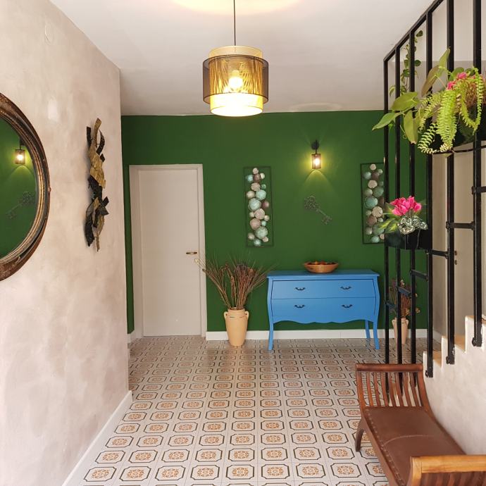 restoran i teretana, na prvom katu je centralni hodnik koji odvaja privatni stan (75m2) sa dvije velike terase i 3 sobe za iznajmljivanje.