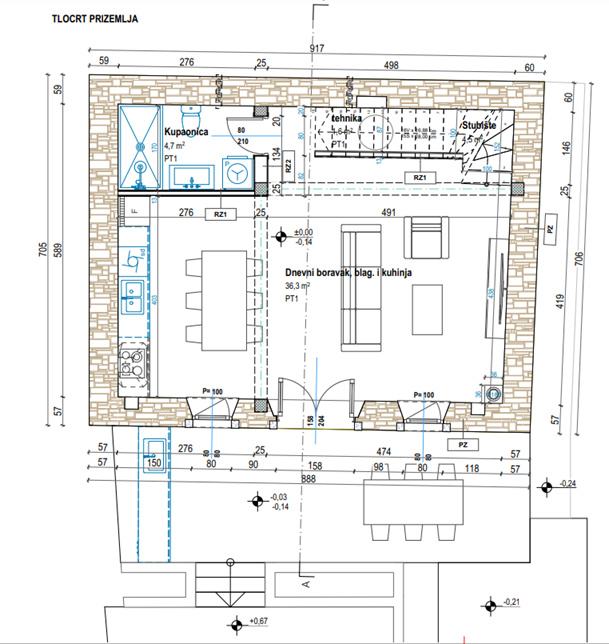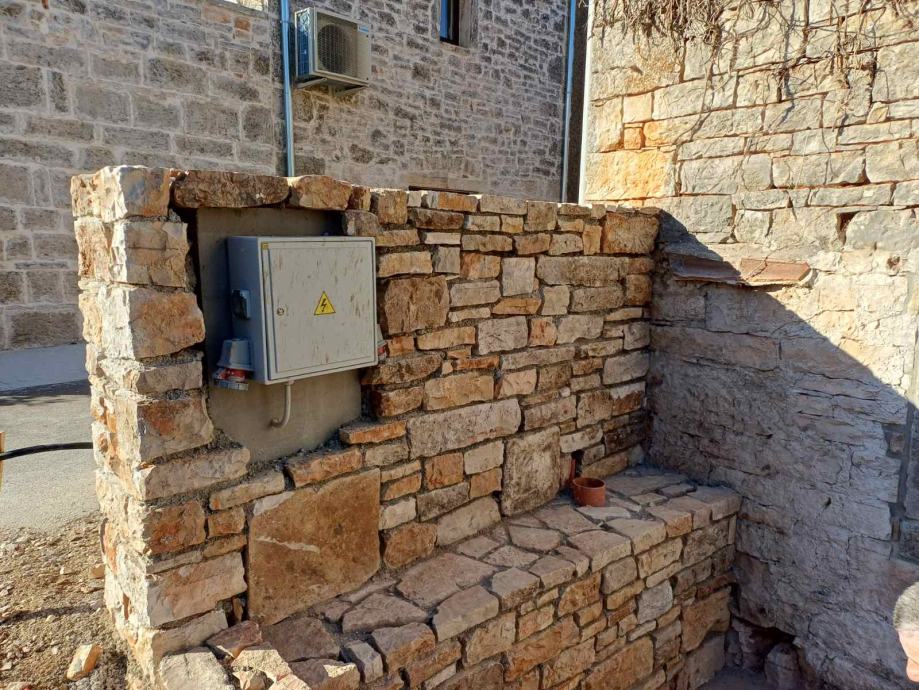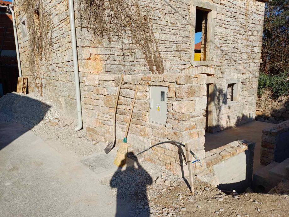 Izgrađena AB podna ploča, AB međukatna konstrukcija sa betonski stepenicama te nova drvena krovna konstrukcija sa svima slojevima i završnim pokrovom od crijepa mediterana. Izgrađen pregradni zid za wc u prizemlju. Prema projektu izrađeni novi otvori (4) sa ugradnjom starih erti na vanjskom pročelju. Na nekretnini postoji priključak vode i građevinski priključak struje.