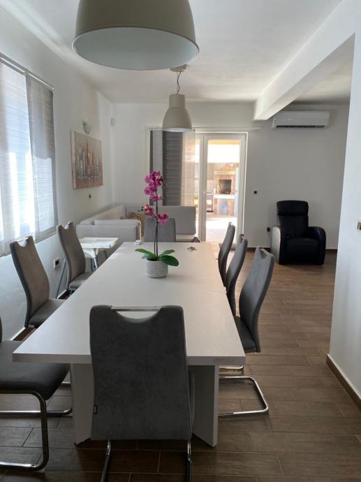 Vanjski dio se sastoji od bazena 7 x 4 m + rimski ulaz (32 m2), okućnice i kompletne vanjske kuhinje sa kaminom i prostorom za sjedenje te WC-om.