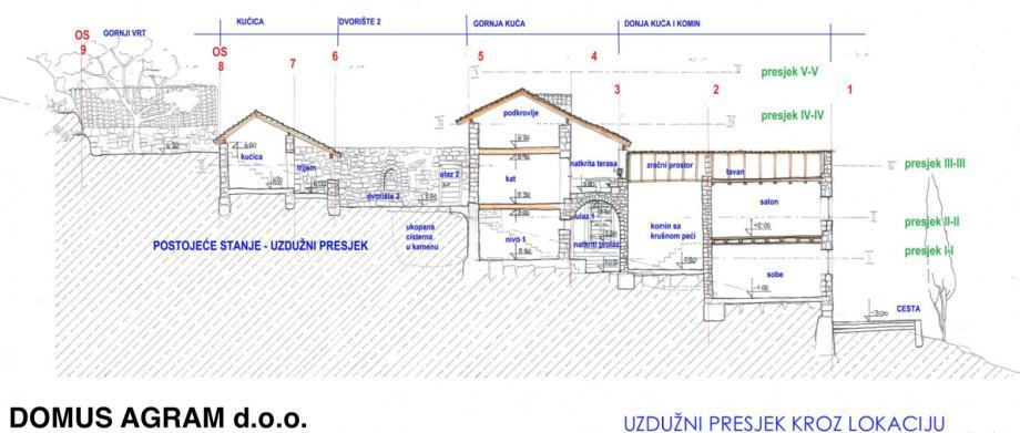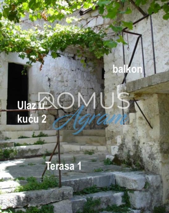 Prodaju se dvije stare kamene kuće sa pratećim pomoćnim objektima – još dvije manje kuće u selu Topolo, korisne neto površine cca: 183 m2. GBP-a svih zgrada na parceli iznosi ukupno 244,10 m2.