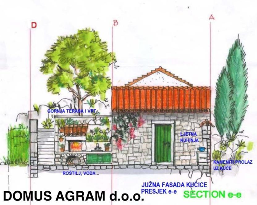 dvokrevetna soba sa kupaonicom, natkrivena terasa sa ljetnom kuhinjom i posebna ozelenjena terasa na najvišem nivou sa prirodnim hladom ispod drveta sa ogromnom krošnjom.