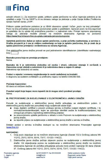 Uvjeti i način provedbe dražbe navedeni su u istaknutom pozivu na sudjelovanje.