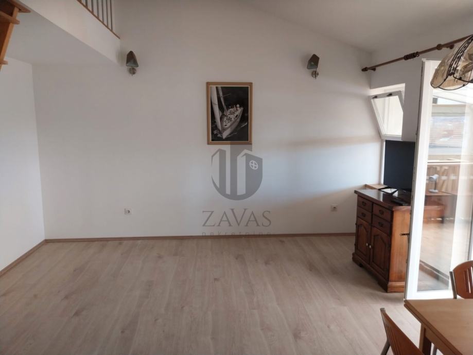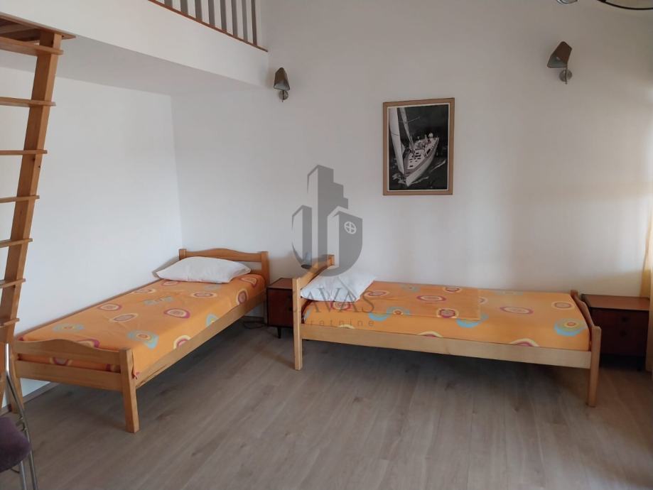 U visokom potkrovlju, ukupne površine 105 m², smještene su sobe s vlastitim WC-om i kupaonicom, prostrani dnevni boravak s kuhinjom te izlaz na ustakljenu terasu s prekrasnim pogledom na more.