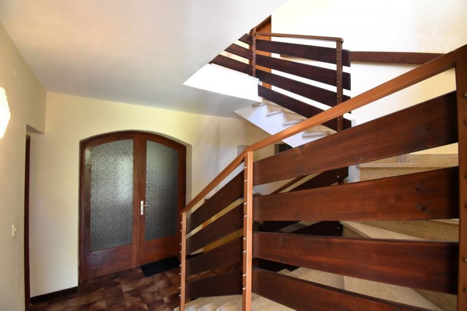 U prizemlju kuće nalazi se veliki stan koji se sastoji od kuhinje, dnevnog boravka, blagovaonice, tri spavaće sobe, kupatila i gostinjskog wc-a i natkrivene terase.