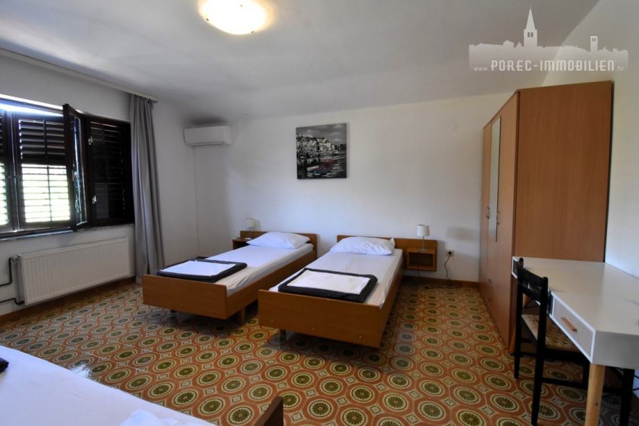 Nedaleko centra Poreča i prekrasnih plaža, u malome mjestu sa svim potrebnim sadržajima za lagodan život, prodaje se kuća veličine 260 m2 koja se nalazi na zemljištu veličine 2166 m2.
