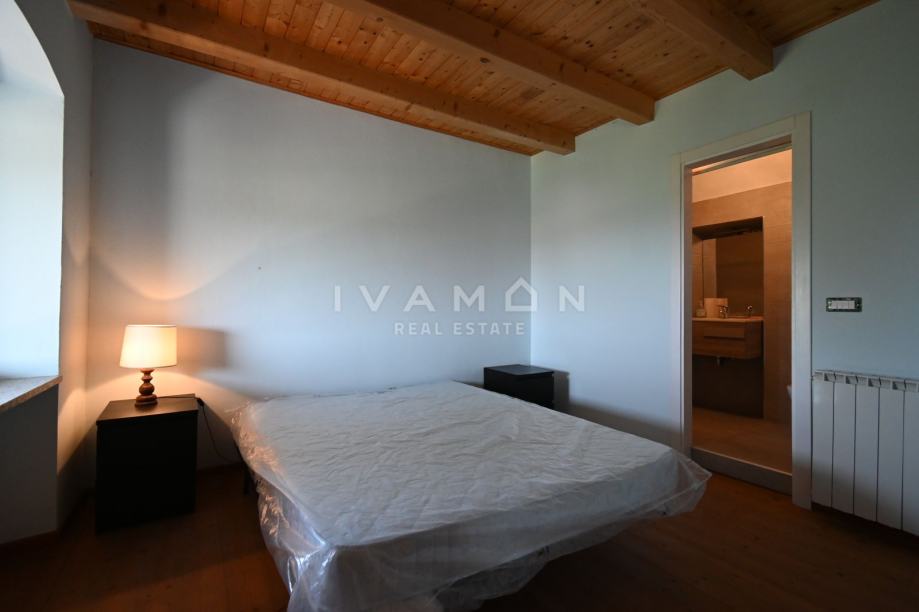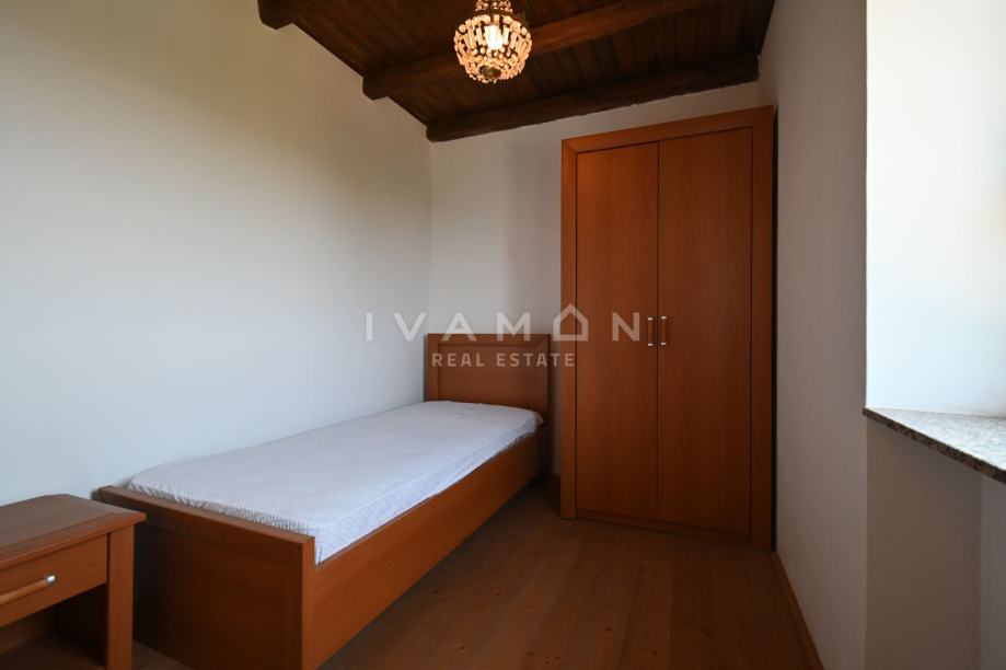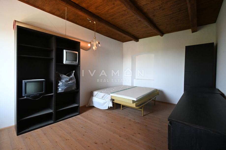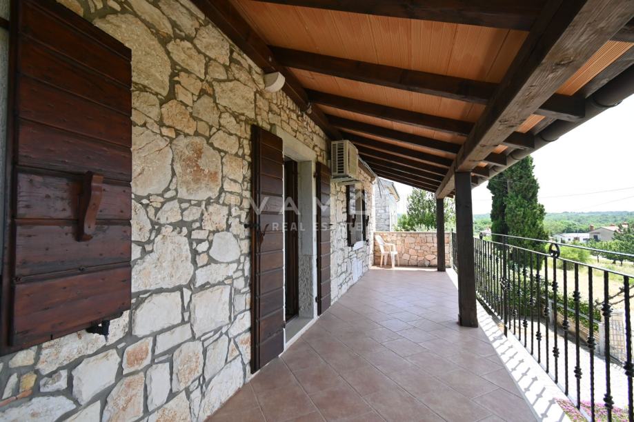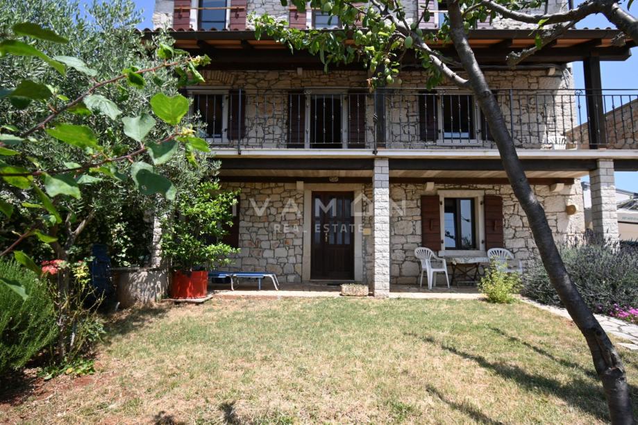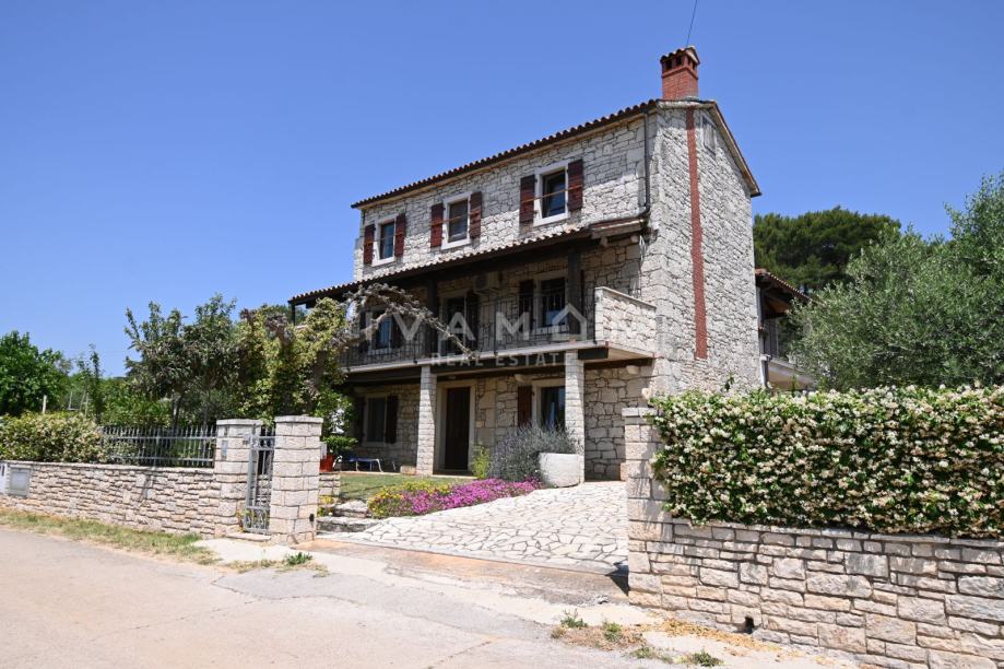 U okolici Poreča, u malom i lijepom selu 10 km od mora, prodaje se samostojeća kamena kuća s bazenom i tri stana.